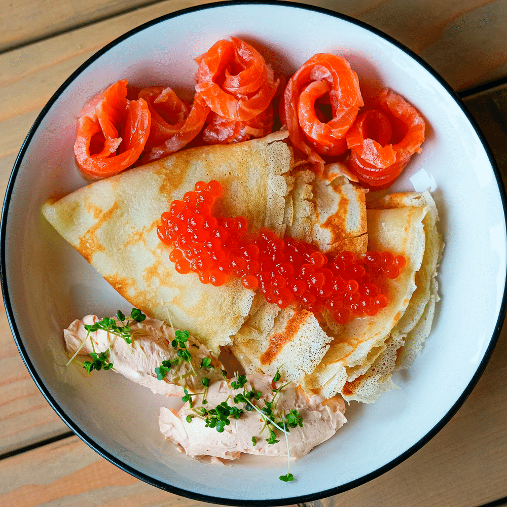 Блинчики с глазированным цыпленком и подвесной сметаной
