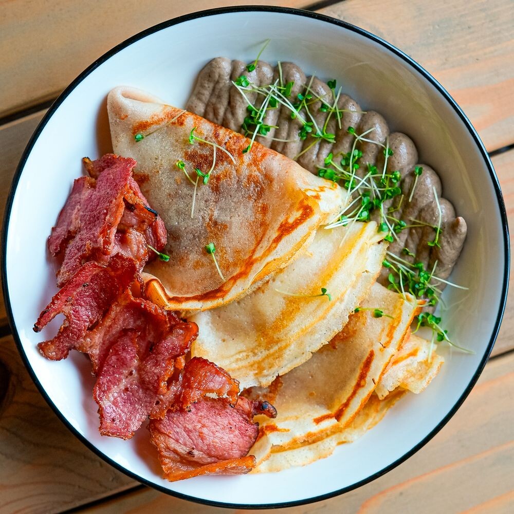 Блинчики с глазированным цыпленком и подвесной сметаной