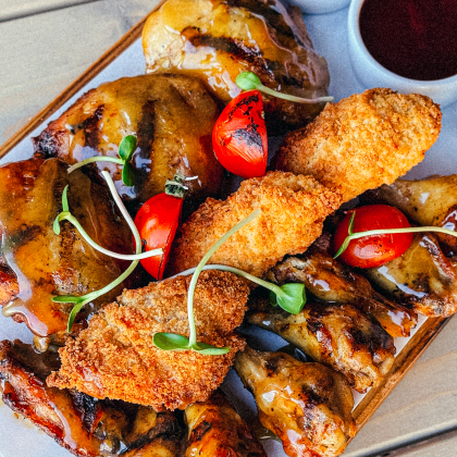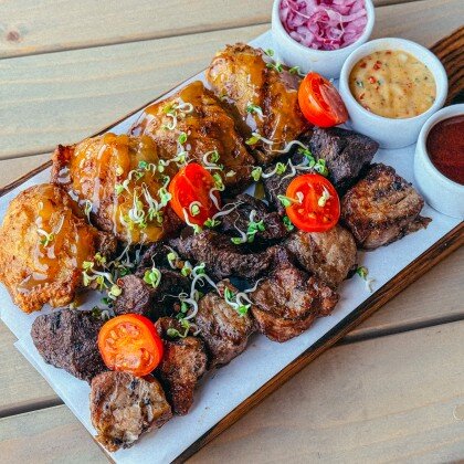 Сочный тунец и нежная сёмга, обжаренные на гриле, тигровые креветки, которые порадуют своим вкусом и ароматом, а так же запечённый картофель. Морские лакомства дополнены соусами, которые добавляют яркие акценты, позволяя создать уникальные сочетания.